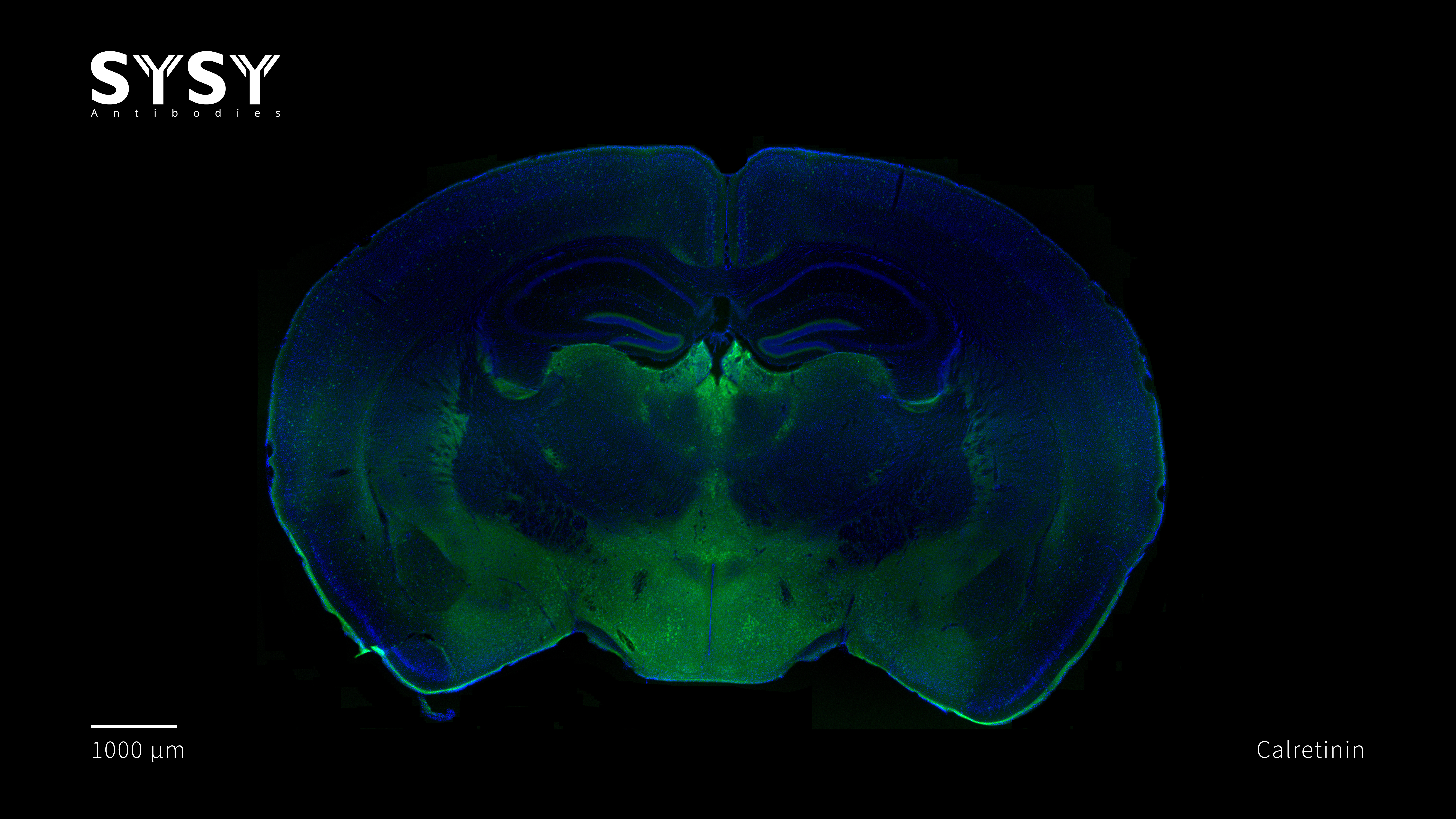 Indirect immunostaining of a formaldehyde fixed coronal mouse brain section with mouse anti-Calretinin antibody (cat. no. 214 111, dilution 1 : 500).