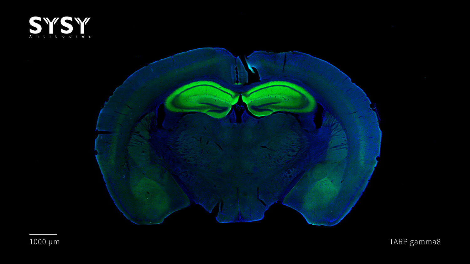 Indirect immunostaining of a formaldehyde fixed coronal mouse brain section with rabbit anti-TARP gamma8 antibody (cat. no. 478 003, dilution 1 : 2500).