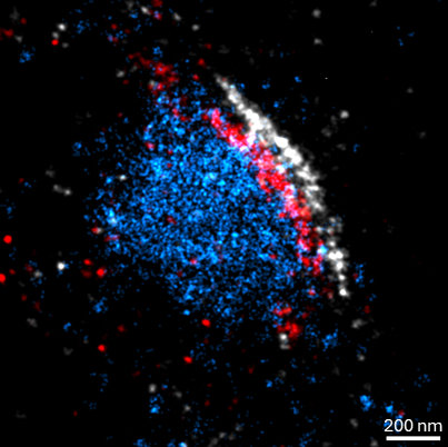 Our partner company Massive Photonics offers ready-to-use kits for multi-target staining of various neuronal targets using some of our well-established antibodies for DNA-PAINT (DNA-Point Accumulation for Imaging in Nanoscale Topography). This localization based super-resolution microscopy method employs short, dye-labeled single stranded DNA that transiently binds its complementary sequences, which are attached to target-specific antibodies or nanobodies.