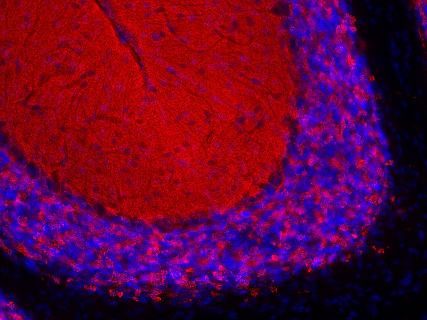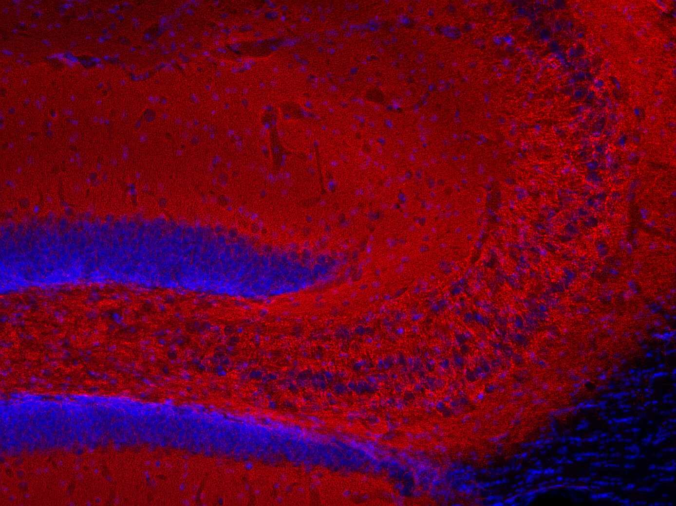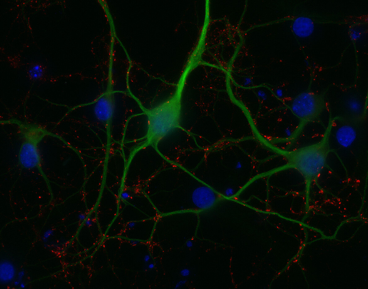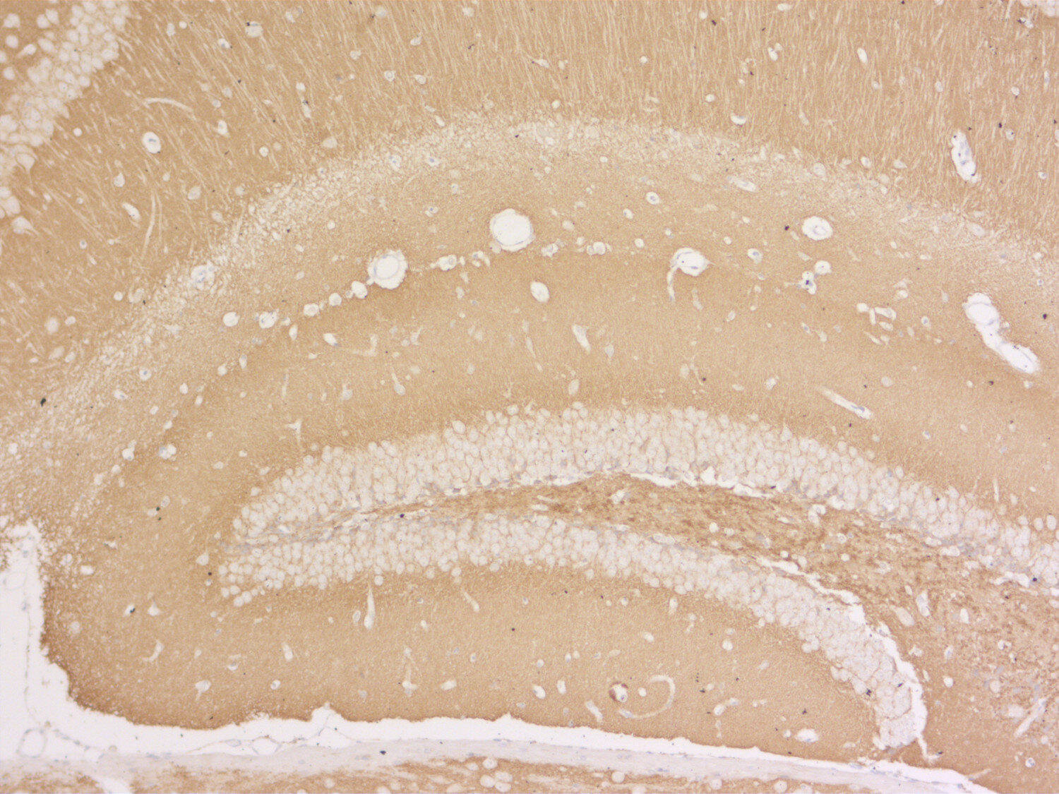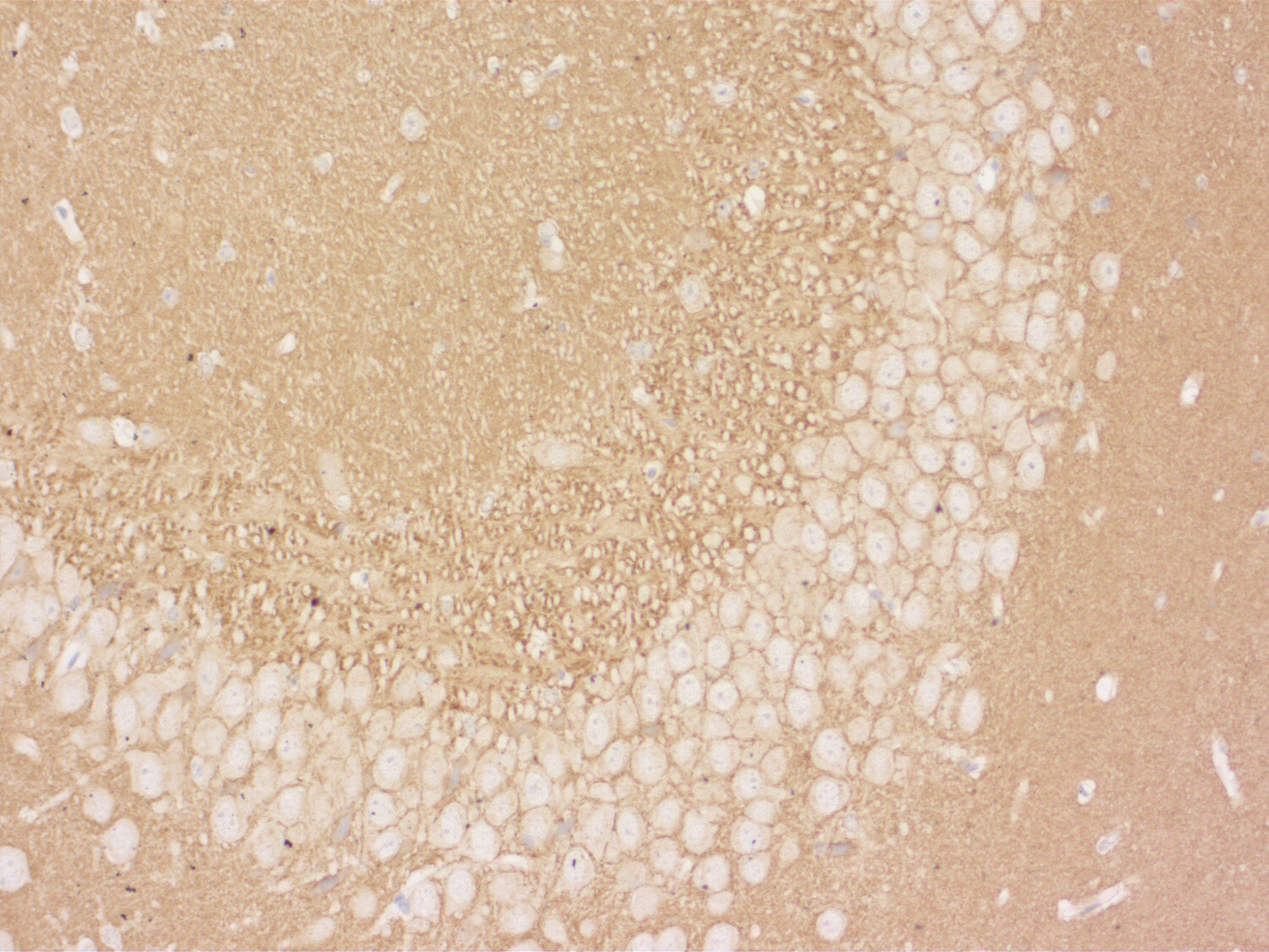 Synaptophysin1 has four transmembrane domains with both N- and C-terminus facing the cytoplasm. It binds to synaptobrevin1 and synaptobrevin2 in detergent extracts but its function has not been elucidated completely. It forms a complex with dynamin at high Ca2+ concentration suggesting an involvement in synaptic vesicle endocytosis. As typical for synaptic vesicle proteins, synaptophysin1 represents a small protein family with two additonal members, synaptoporin (synaptophysin2) and panthophysin. Like synaptophysin1, synaptoporin is widely expressed in neurons and colocalizes with synaptophysin1 on synaptic vesicles whereas panthophysin is expressed in all tissues.