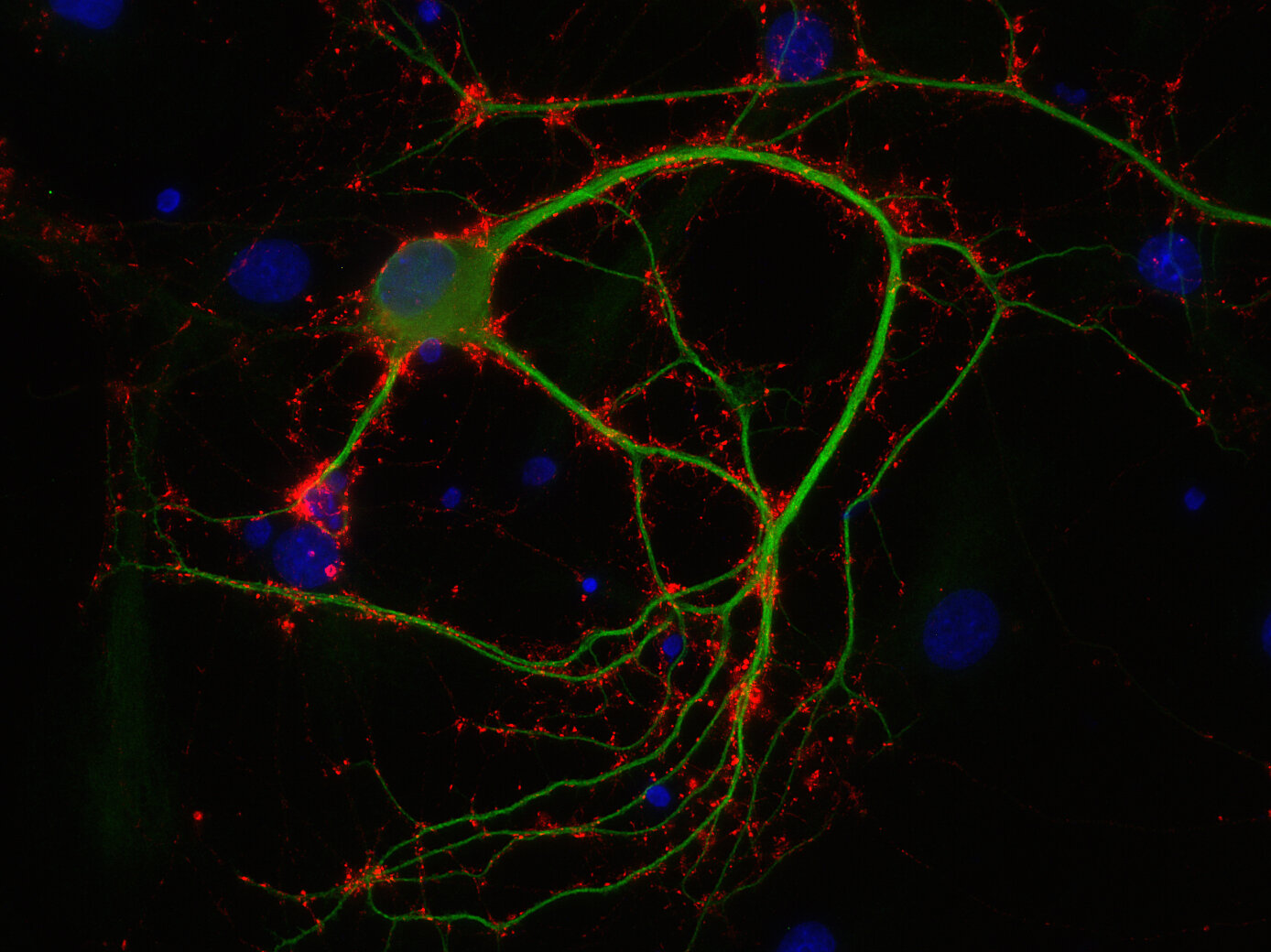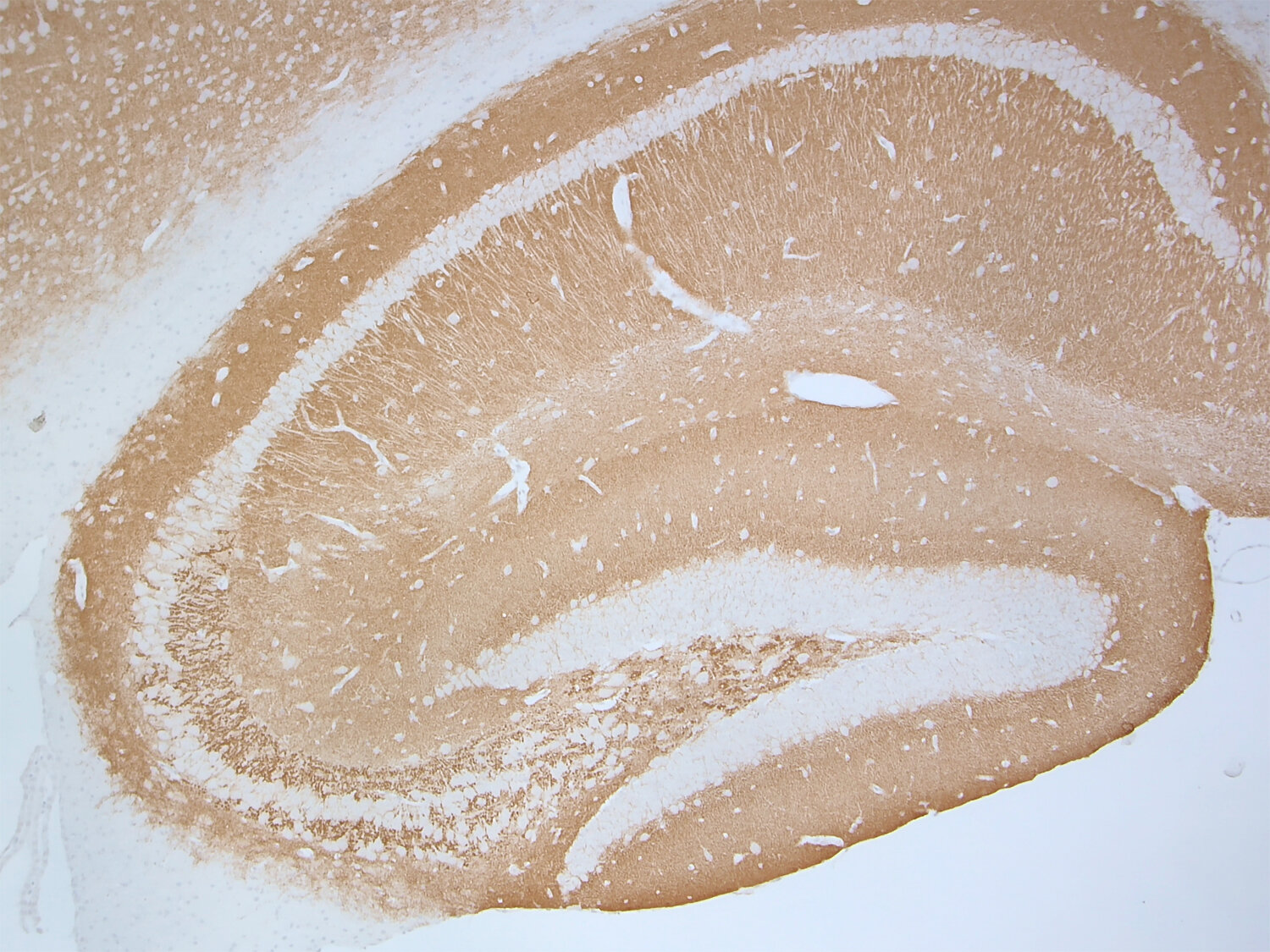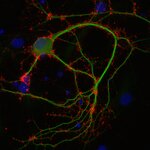 Synaptophysin1 has four transmembrane domains with both N- and C-terminus facing the cytoplasm. It binds to synaptobrevin1 and synaptobrevin2 in detergent extracts but its function has not been elucidated completely. It forms a complex with dynamin at high Ca2+ concentration suggesting an involvement in synaptic vesicle endocytosis. As typical for synaptic vesicle proteins, synaptophysin1 represents a small protein family with two additonal members, synaptoporin (synaptophysin2) and panthophysin. Like synaptophysin1, synaptoporin is widely expressed in neurons and colocalizes with synaptophysin1 on synaptic vesicles whereas panthophysin is expressed in all tissues.