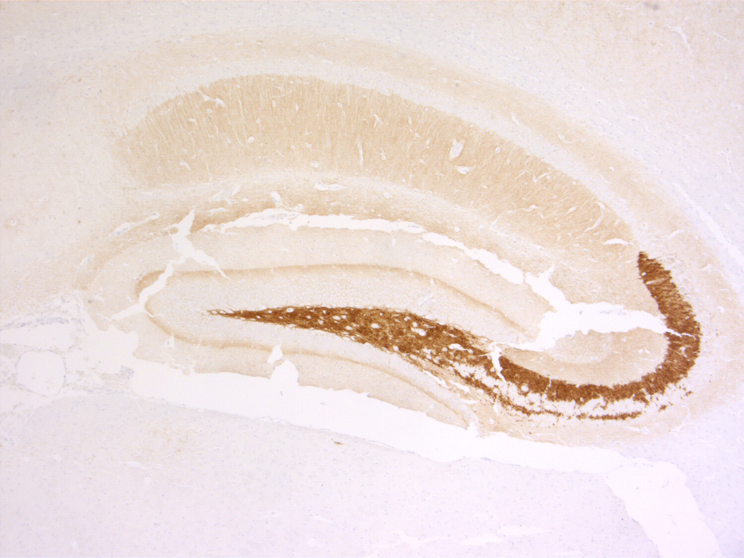 The distributions of synaptophysin1 and synaptoporin are different. Synaptophysin1 is more uniformly expressed whereas synaptoporin is particularly enriched in mossy fiber synapses in the hippocampus. It is thus an excellent marker for subsets of synapses.