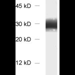 50 µg specific antibody, lyophilized. Affinity purified with the immunogen. Albumin was added for stabilization. For reconstitution add 50 µl H2O to get a 1mg/ml solution in PBS. Then aliquot and store at -20°C to -80°C until use. Antibodies should be stored at +4°C when still lyophilized. Do not freeze! |