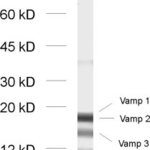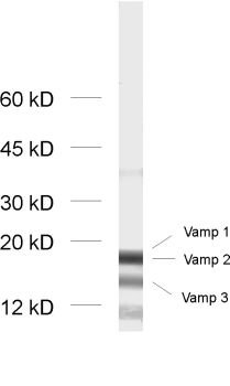 Synaptobrevin 1 is highly conserved between vertebrates and invertebrates. It is a major constituent of synaptic vesicles and peptidergic secretory granules in all neurons examined so far. In addition, it is present on secretory granules of neuroendocrine cells. Low levels of synaptobrevin 2 are present in many other tissues where the protein resides on specialized microvesicles.