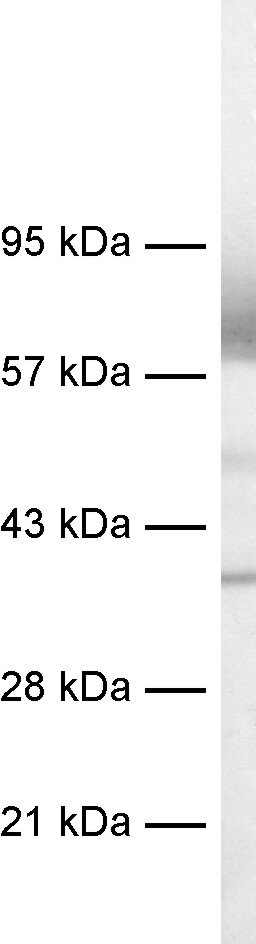 This antibody is a chimeric antibody based on the well known monoclonal mouse antibody clone 41.1. The constant regions of the heavy and light chains have been replaced by rabbit specific sequences. Therefore, the antibody can be used with standard anti-rabbit secondary reagents. The antibody has been expressed in mammalian cells. |