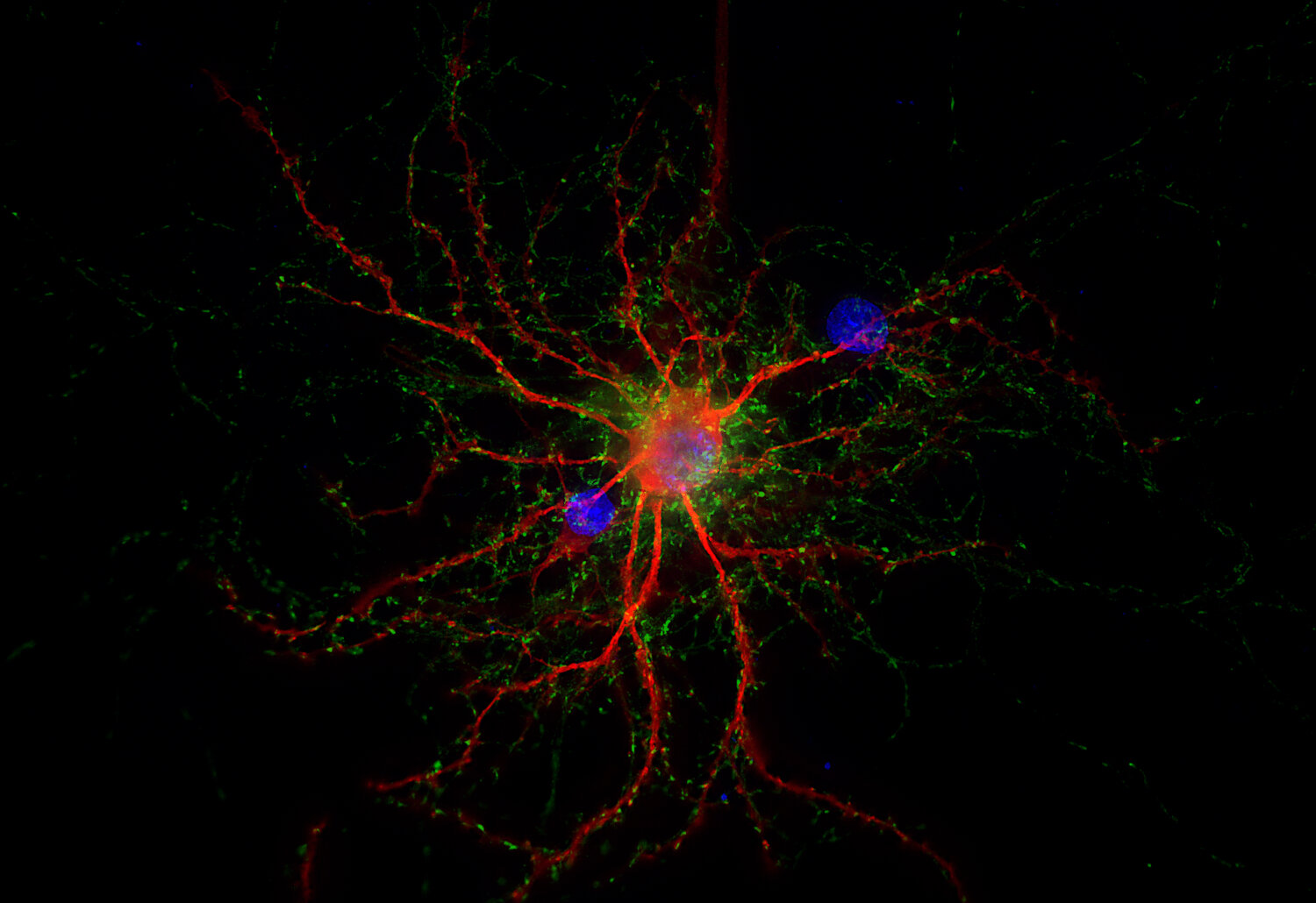 Ca2+-binding to synaptotagmin triggers exocytosis of synaptic vesicles, thus linking Ca2+-influx during depolarization to neurotransmitter release.