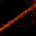 Synaptotagmin1, also known as p65, is an integral membrane glycoprotein of neuronal synaptic vesicles and secretory granules of neuroendocrine cells that is widely (but not ubiquitously) expressed in the central and peripheral nervous system. It has a variable N-terminal domain that is exposed to the lumen of the vesicle and a conserved cytoplasmic tail that contains two Ca2+-binding C2-domains.