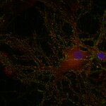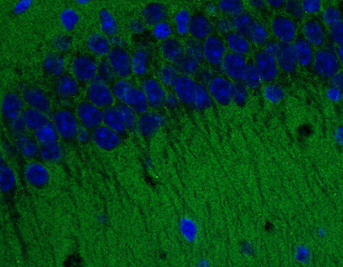 Albumin was added for stabilization. For reconstitution add 100 µl H2O to get a 1mg/ml solution in PBS. Either add 1:1 (v/v) glycerol, then aliquot and store at -20°C until use, or store aliquots at -80°C without additives. Reconstitute immediately upon receipt! Avoid bright light when working with the antibody to minimize photo bleeching of the fluorescent dye. |