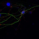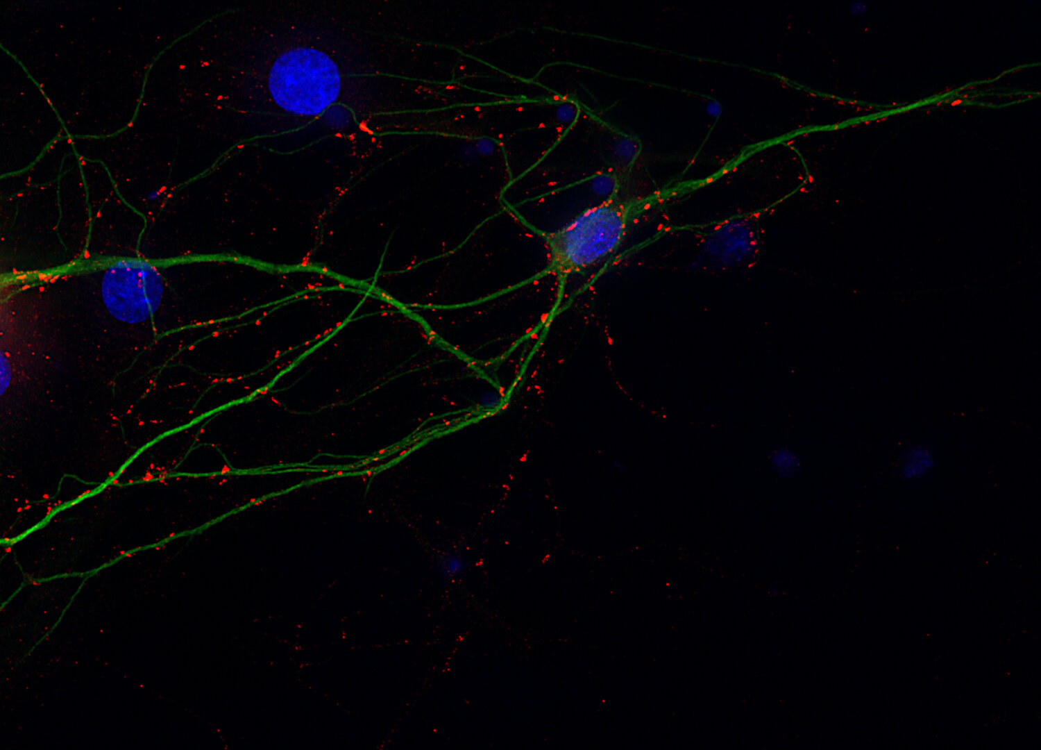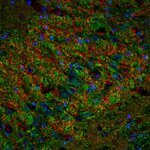 Synapsin1 is one of the most specific markers of synapses throughout the central and peripheral nervous system. In addition to synaptic nerve terminals, the protein is also present in certain sensory nerve endings. It is expressed in two splice variants (synapsin1a and synapsin1b). Synapsin1 interacts with vesicle membranes as well as with actin and spectrin.