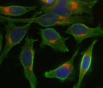 Syntaxin 8, a member of the SNARE family of proteins, is functionally related to the C-terminus of SNAP 25. Syntaxin 8 is localized to endosomal membranes of a wide variety of cells and is involved in the fusion of late endosomes and lysosomes. In endosomal membranes, syntaxin 8 forms complexes with endobrevin, syntaxin 7 and vti1b.