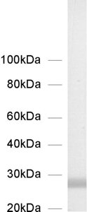 50 µg specific antibody, lyophilized. Affinity purified with the immunogen. Albumin and azide were added for stabilization. For reconstitution add 50 µl H2O to get a 1mg/ml solution in PBS. Then aliquot and store at -20°C to -80°C until use. Antibodies should be stored at +4°C when still lyophilized. Do not freeze! |