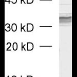 50 µg specific antibody, lyophilized. Affinity purified with the immunogen. Albumin was added for stabilization. For reconstitution add 50 µl H2O to get a 1mg/ml solution in PBS. Then aliquot and store at -20°C to -80°C until use. Antibodies should be stored at +4°C when still lyophilized. Do not freeze! |