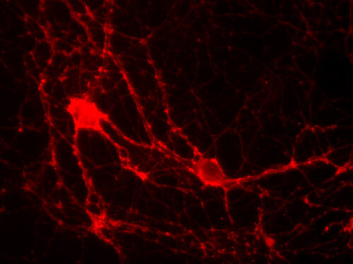 SNAP25 is part of the exocytotic fusion complex (v-SNARE) of neurons where it assembles with syntaxin1 and synaptobrevin. It is abundantly localized on the neuronal plasmalemma and on recycling vesicles including synaptic vesicles. It is also expressed in neuroendocrine cells. There are two splice-variants, SNAP25A and 25B.