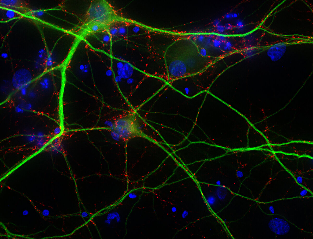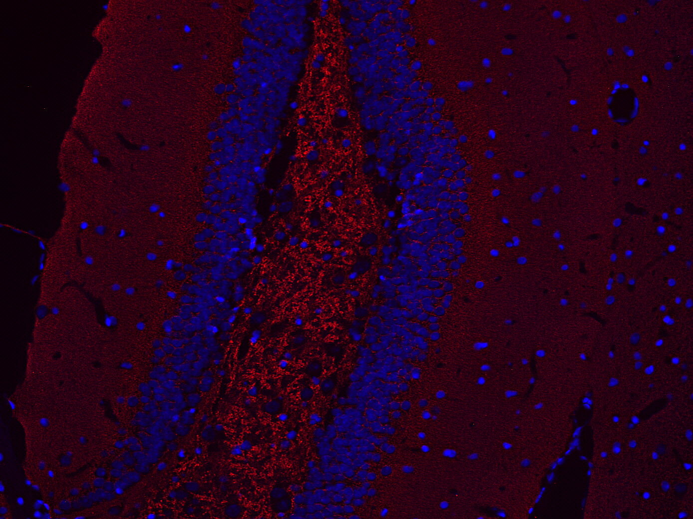 SV2s (Synaptic Vesicle Protein 2) are integral membrane glycoproteins present in synaptic vesicles. They have 12 transmembrane domains predicted by sequence analysis (1). There are three characterized isoforms, SV2 A, SV2 B and SV2 C that are similar in structure but show different expression patterns. SV2 A is expressed ubiquitously throughout the brain and plays a crucial role in modulating synaptic transmission by regulating the expression and trafficking of synaptotagmin, a key calcium sensor in neurotransmitter release (1).