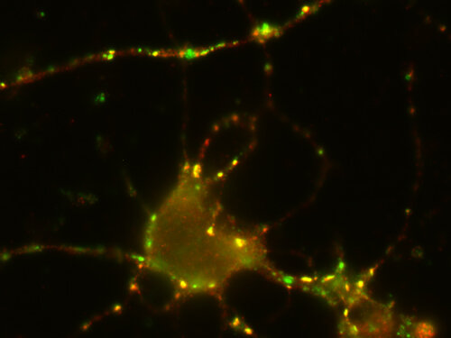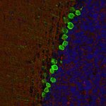 SV2s (Synaptic Vesicle Protein 2) are integral membrane glycoproteins present in synaptic vesicles. They have 12 transmembrane domains predicted by sequence analysis (1). There are three characterized isoforms, SV2 A, SV2 B and SV2 C that are similar in structure but show different expression patterns. SV2 A is expressed ubiquitously throughout the brain and plays a crucial role in modulating synaptic transmission by regulating the expression and trafficking of synaptotagmin, a key calcium sensor in neurotransmitter release (1).