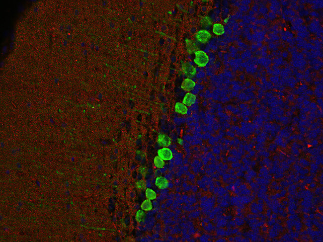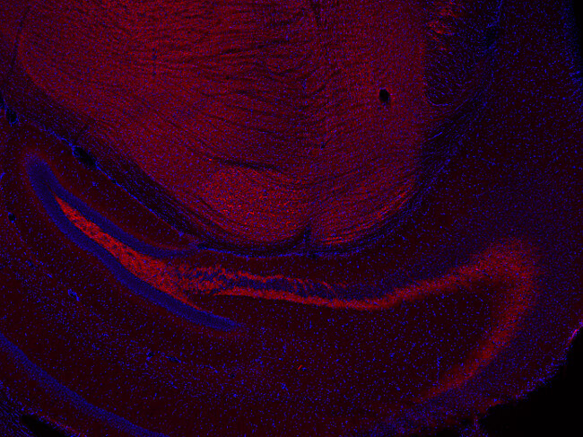 SV2 B has a more restricted distribution with varying degrees of coexpression with SV2 A and is predominantly found in the cortex and hippocampus (2). SV2 C is more closely related to SV2 A but shows a very restricted expression pattern. The highest expression levels were observed in phylogenetically old brain areas like pallidum, the midbrain and the olfactory bulb (3).