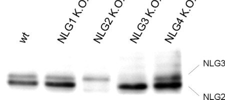 WB: Recognizes neuroligin 2 and 3. ICC: Stains predominantly neuroligin 2 in cultured hippocampus neurons. Detects transiently expressed GFP fusion proteins comprising the cytoplasmic tails of neuroligins 1-4. K.O. validated |