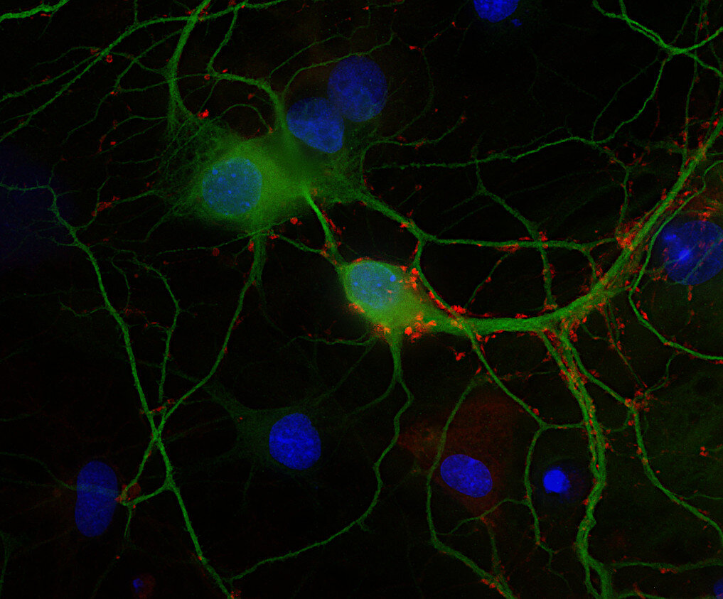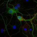 Albumin and azide were added for stabilization. For reconstitution add 100 µl H2O to get a 1mg/ml solution in PBS. Either add 1:1 (v/v) glycerol, then aliquot and store at -20°C until use, or store aliquots at -80°C without additives. Reconstitute immediately upon receipt! Avoid bright light when working with the antibody to minimize photo bleeching of the fluorescent dye. |