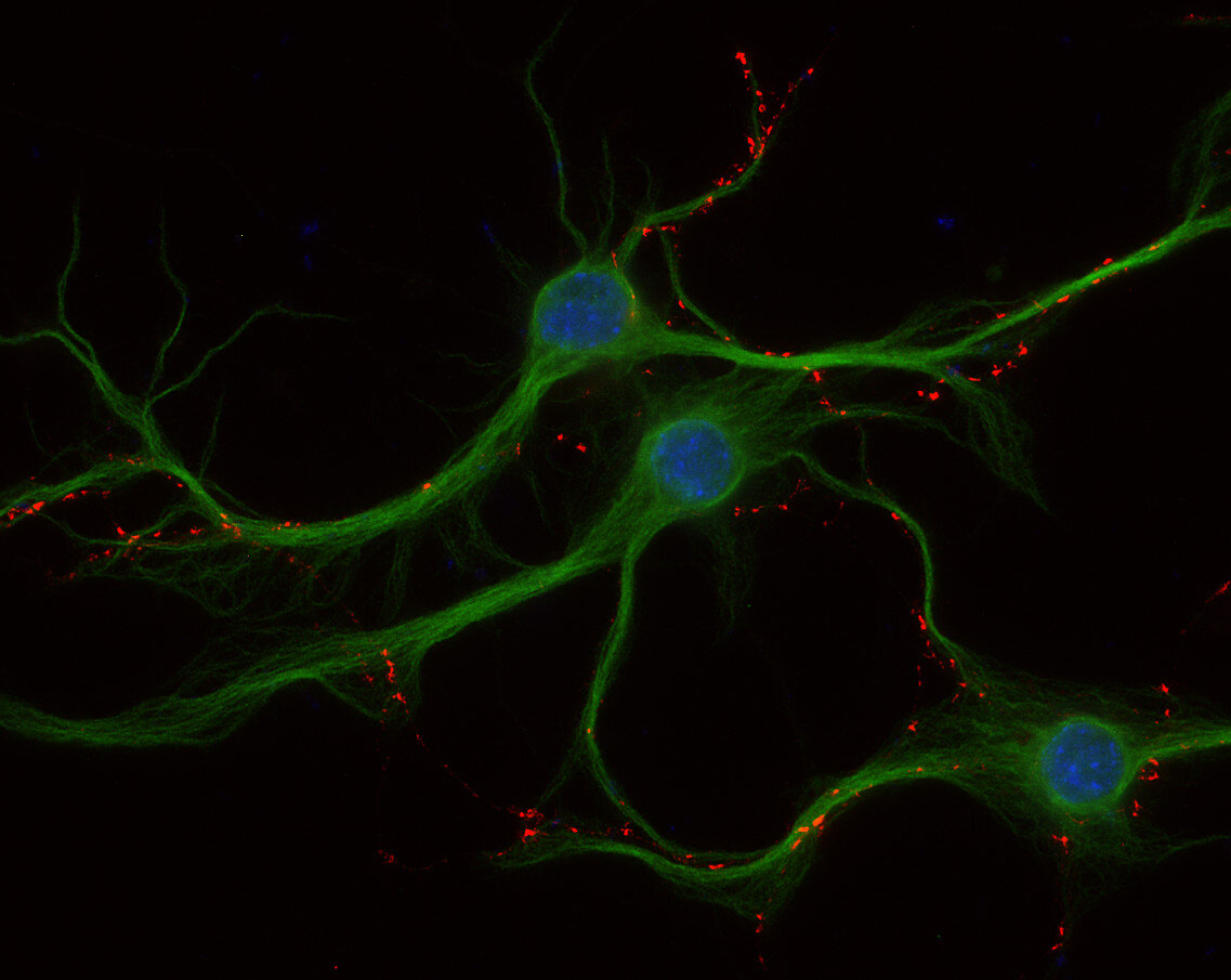 Albumin and azide were added for stabilization. For reconstitution add 100 µl H2O to get a 1mg/ml solution in PBS. Either add 1:1 (v/v) glycerol, then aliquot and store at -20°C until use, or store aliquots at -80°C without additives. Reconstitute immediately upon receipt! Avoid bright light when working with the antibody to minimize photo bleeching of the fluorescent dye. |