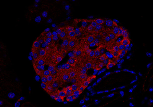 100 µg purified IgG, lyophilized. Albumin and azide were added for stabilization. For reconstitution add 100 µl H2O to get a 1mg/ml solution in PBS. Then aliquot and store at -20°C to -80°C until use. Antibodies should be stored at +4°C when still lyophilized. Do not freeze! |