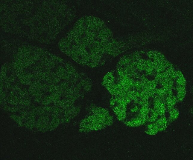 50 µg specific antibody, lyophilized. Affinity purified with the immunogen. Albumin was added for stabilization. For reconstitution add 50 µl H2O to get a 1mg/ml solution in PBS. Then aliquot and store at -20°C to -80°C until use. Antibodies should be stored at +4°C when still lyophilized. Do not freeze! |