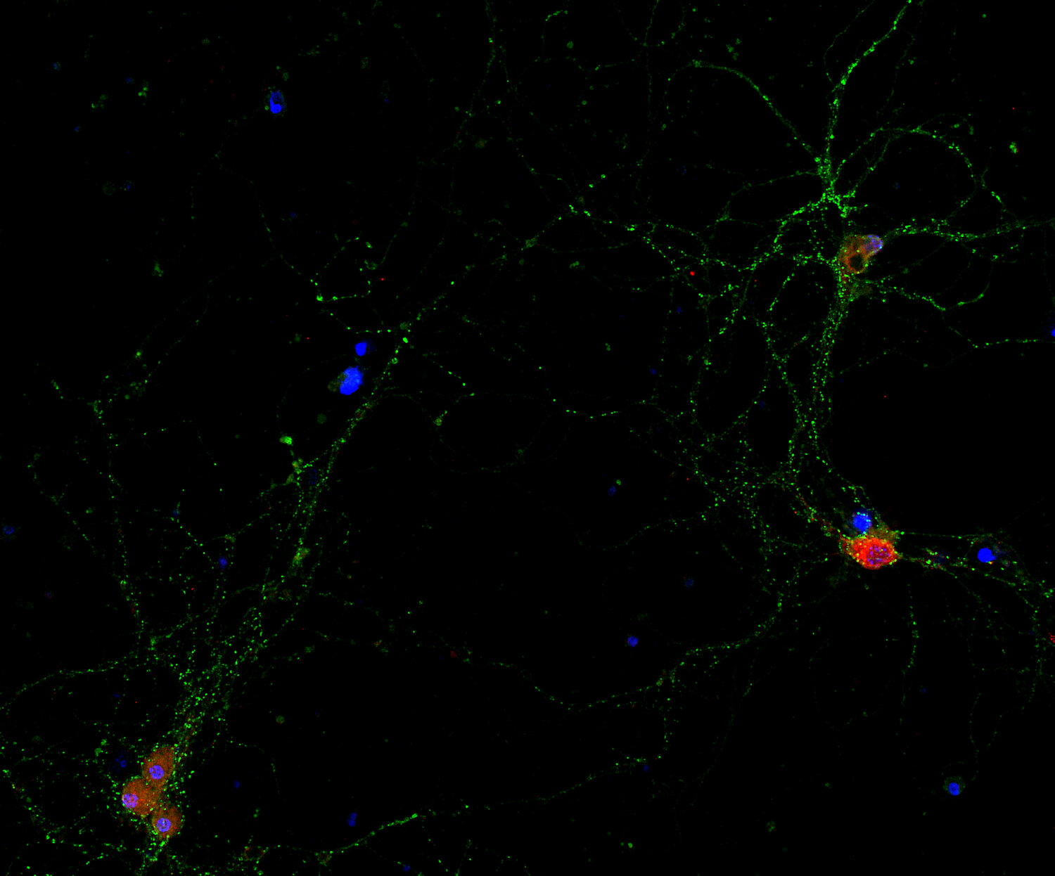 This antibody is a chimeric antibody based on the monoclonal rat antibody SY-150H10. The constant regions of the heavy and light chains have been replaced with rabbit specific sequences. The antibody can therefore be used with standard anti-rabbit secondary reagents. The antibody has been expressed in mammalian cells. |