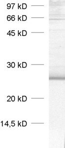 50 µg specific antibody, lyophilized. Affinity purified with the immunogen. Albumin was added for stabilization. For reconstitution add 50 µl H2O to get a 1mg/ml solution in PBS. Then aliquot and store at -20°C to -80°C until use. Antibodies should be stored at +4°C when still lyophilized. Do not freeze! |