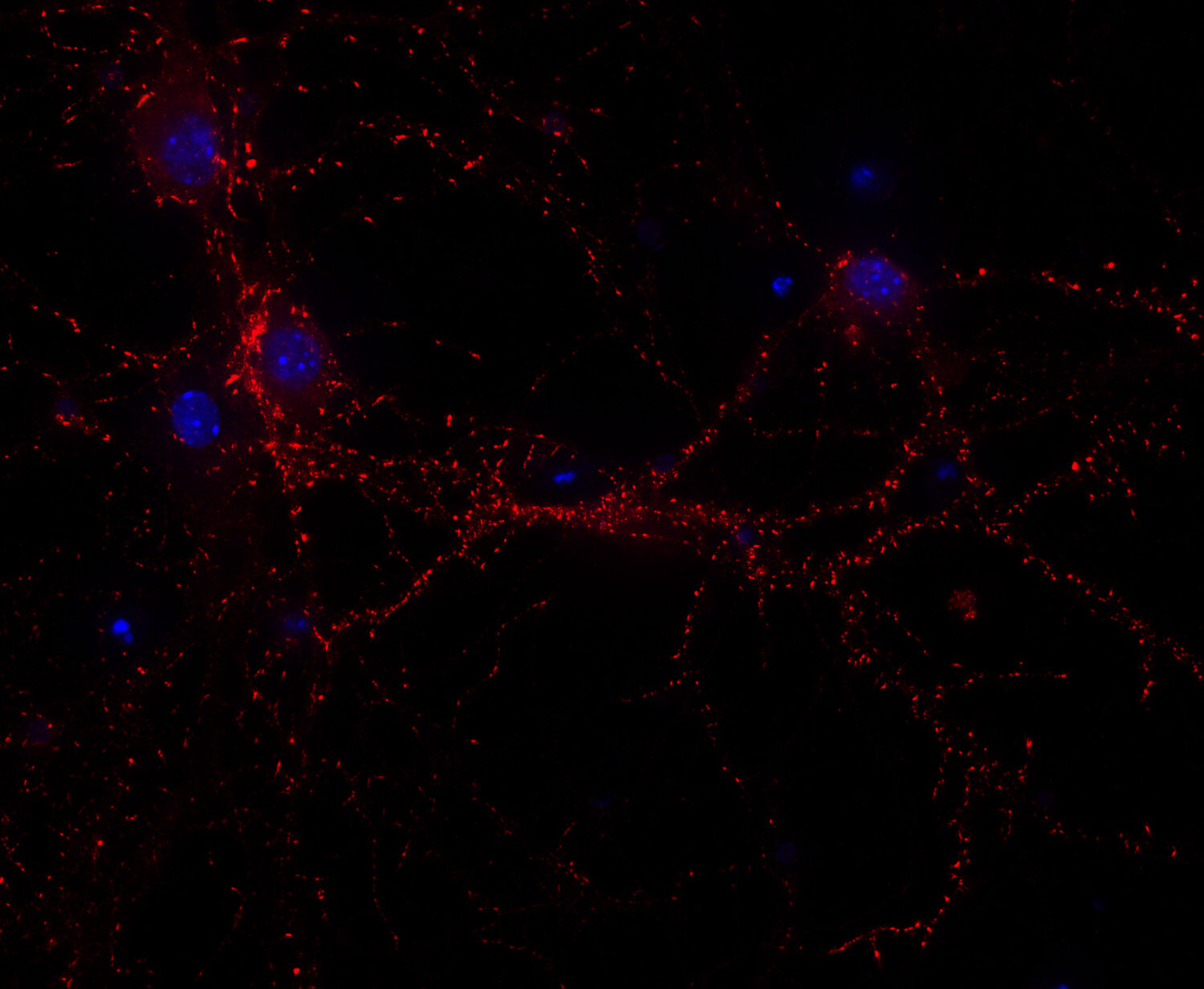 Synaptopodin is the founding member of a class of proline-rich actin-associated proteins and has been originally identified in podocytes of renal glomeruli (1, 2). In brain it localizes to the post-synaptic density (PSD) and the spine aparatus (1). In humans, three isoforms of synaptopodin with a distinct expression profile have been identified, neuronal Synpo-short, renal Synpo-long and Synpo-T. All three isoforms interact with alpha-actinin and induce alpha-actinin-induced actin filaments (3).
