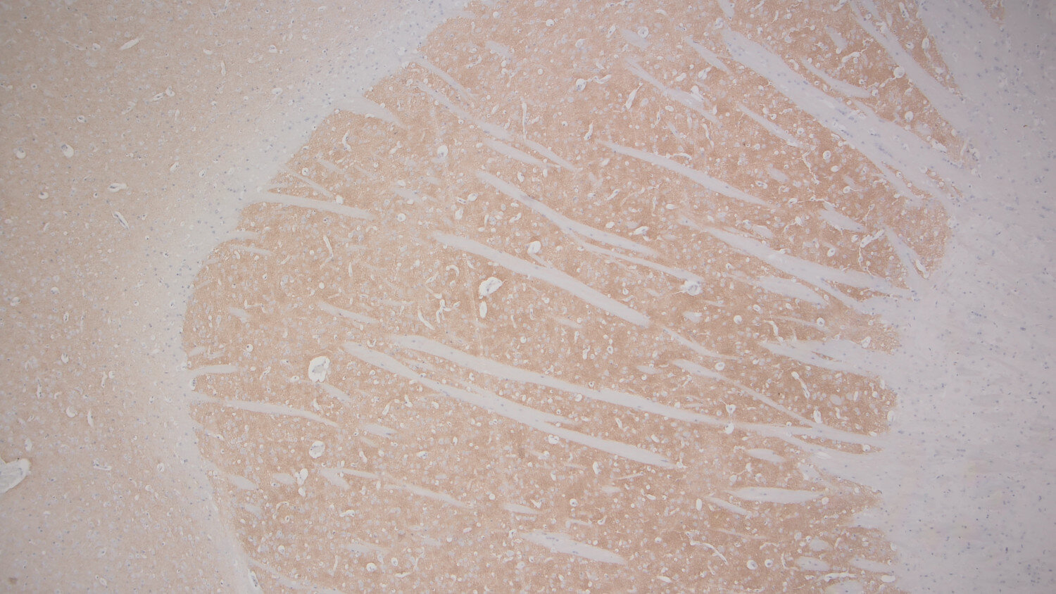 This antibody is a chimeric antibody based on the monoclonal mouse antibody 109C1. The constant regions of the heavy and light chains have been replaced with rabbit specific sequences. The antibody can therefore be used with standard anti-rabbit secondary reagents. The antibody has been expressed in mammalian cells. |
