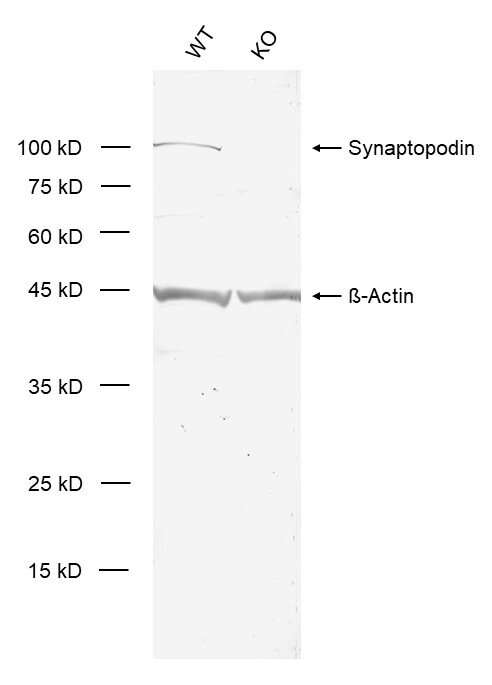 | Specificity | This antibody detects the renal Synpo-long and the neuronal Synpo-short isofoms but is negativ for the T-variant. K.O. validated |