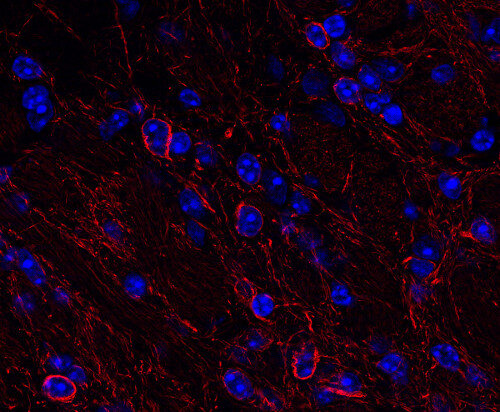 Beyond their structural function, neurofilaments are also valuable biomarkers in both research and clinical settings. They are widely used in immunohistochemistry to stain and visualize axons, particularly in peripheral nerves and the CNS. Increased levels of neurofilament proteins in cerebrospinal fluid (CSF) or blood are strongly associated with neurodegenerative diseases, such as amyotrophic lateral sclerosis (ALS), multiple sclerosis (MS), and Alzheimer’s disease (3). In peripheral nerve studies, neurofilament staining is often combined with other markers, such as S100, to provide a more comprehensive assessment of nerve structure and pathology (4).