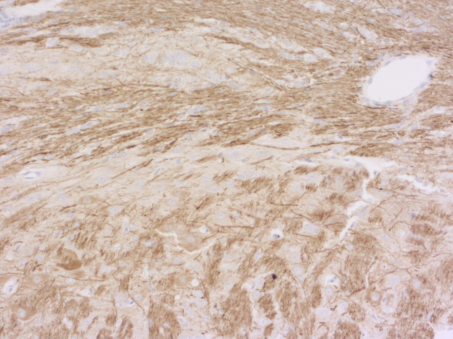 Beyond their structural function, neurofilaments are also valuable biomarkers in both research and clinical settings. They are widely used in immunohistochemistry to stain and visualize axons, particularly in peripheral nerves and the CNS. Increased levels of neurofilament proteins in cerebrospinal fluid (CSF) or blood are strongly associated with neurodegenerative diseases, such as amyotrophic lateral sclerosis (ALS), multiple sclerosis (MS), and Alzheimer’s disease (3). In peripheral nerve studies, neurofilament staining is often combined with other markers, such as S100, to provide a more comprehensive assessment of nerve structure and pathology (4).