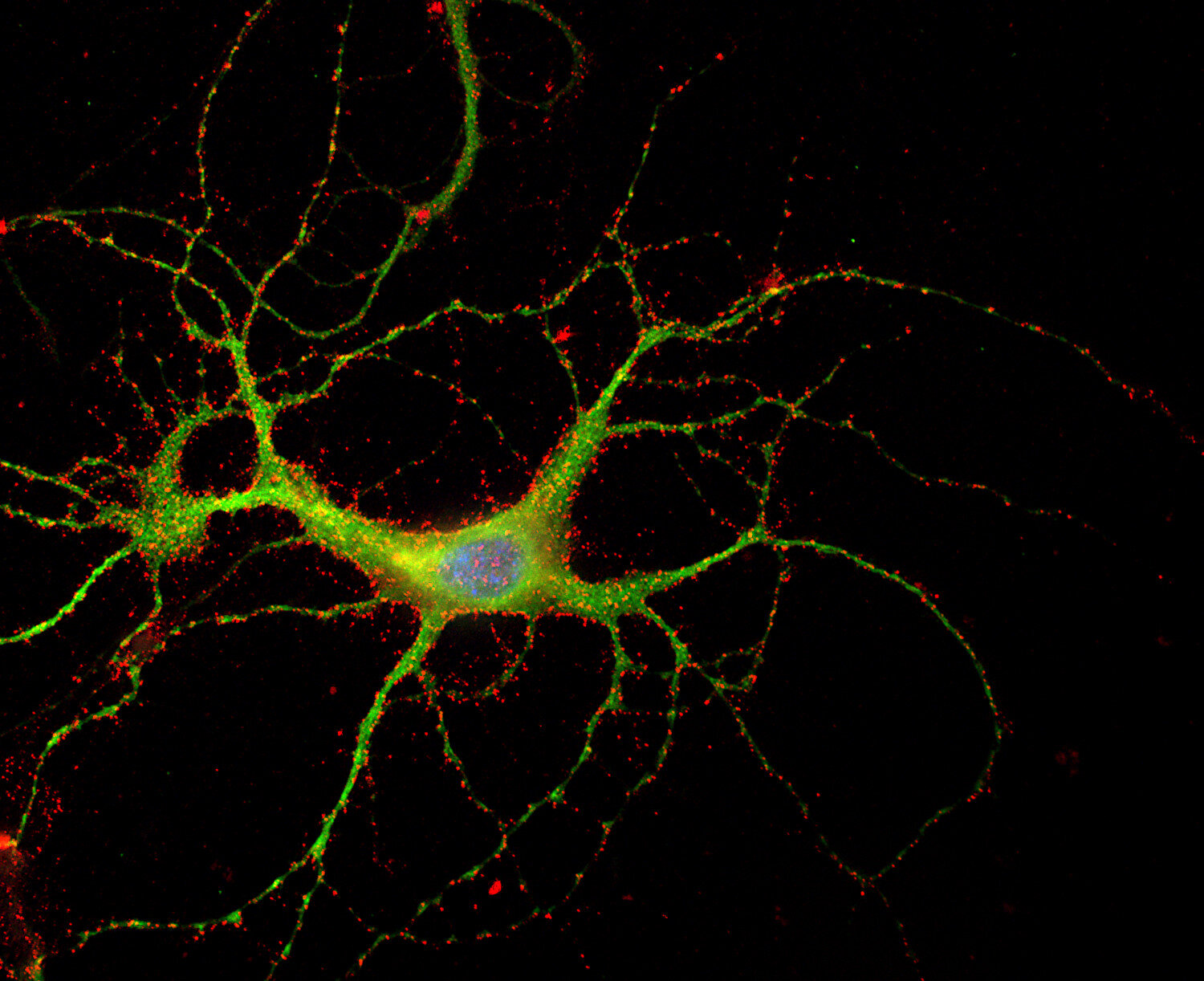 Albumin was added for stabilization. For reconstitution add 100 µl H2O to get a 1mg/ml solution in PBS. Either add 1:1 (v/v) glycerol, then aliquot and store at -20°C until use, or store aliquots at -80°C without additives. Reconstitute immediately upon receipt! Avoid bright light when working with the antibody to minimize photo bleeching of the fluorescent dye. |