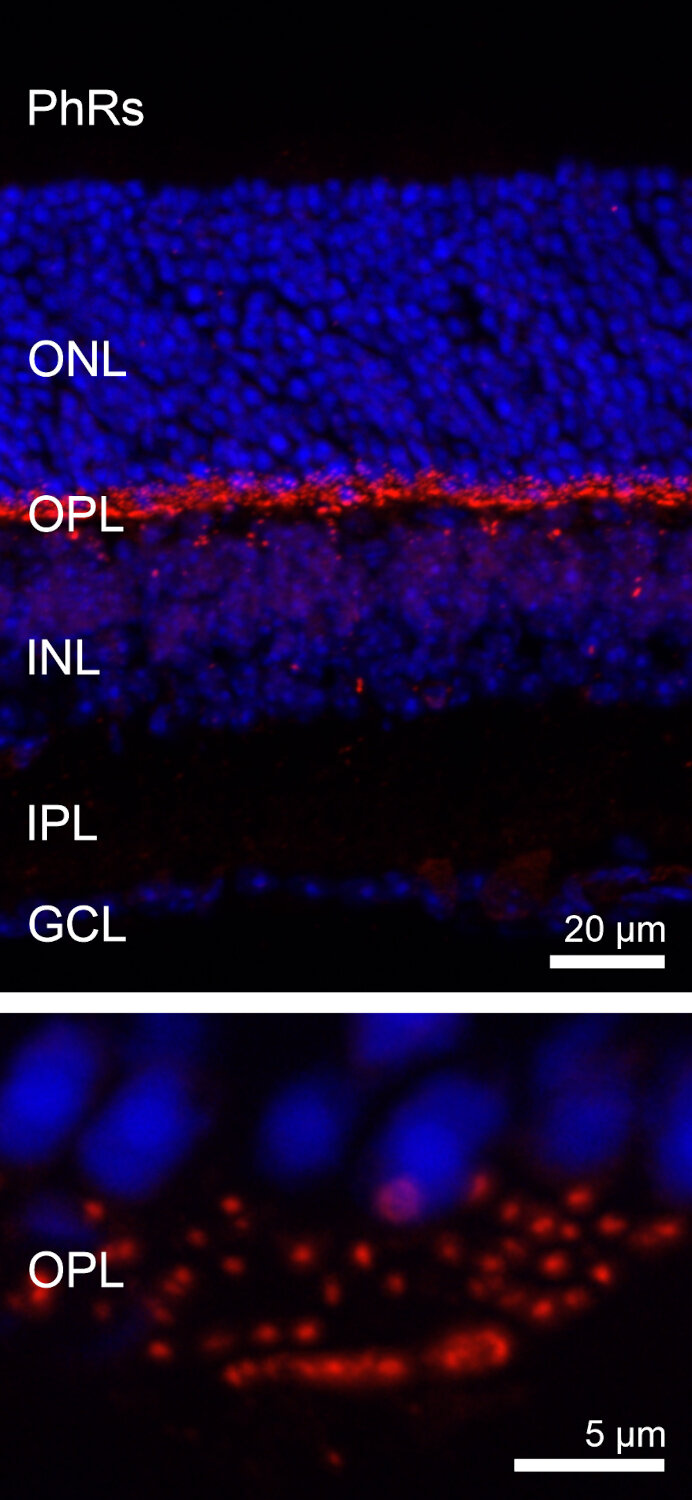 IHC: For optimal results in retina tissue, follow the retina protocol according to Gierke et al. 2023. IHC-Fr: Acetone fixation is recommended. The following fixatives are not advised: methanol-acetone, 4% formaldehyde/PFA, methanol