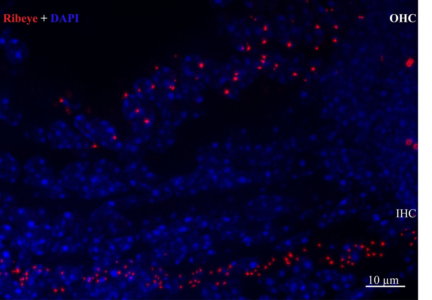 The photoreceptor ribbon synapse is a unique type of synapse specialized for the tonic release of neurotransmitter in the dark. Ribeye is a self-aggregating protein and is one of the major scaffolding components of the ribbon on which the neurotransmitter containing vesicles are tethered. The protein consists of a unique A-domain and a B-domain. With the exception of the first 20 amino acids the B-domain is identical to the transcriptional corepressor CtBP 2. Both proteins originate from the same gene.