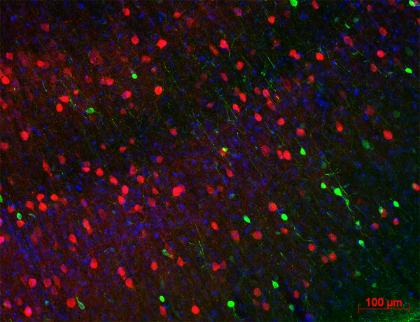 Parvalbumin is a small, acidic calcium binding protein and belongs to the family of EF hand proteins. The protein is found in skeletal muscle and the brain of vertebrates where it locates to a specific population of GABAergic interneurons. This subset of neurons may contribute to maintaining the balance between excitation and inhibition in the cortex and the hippocampus.
