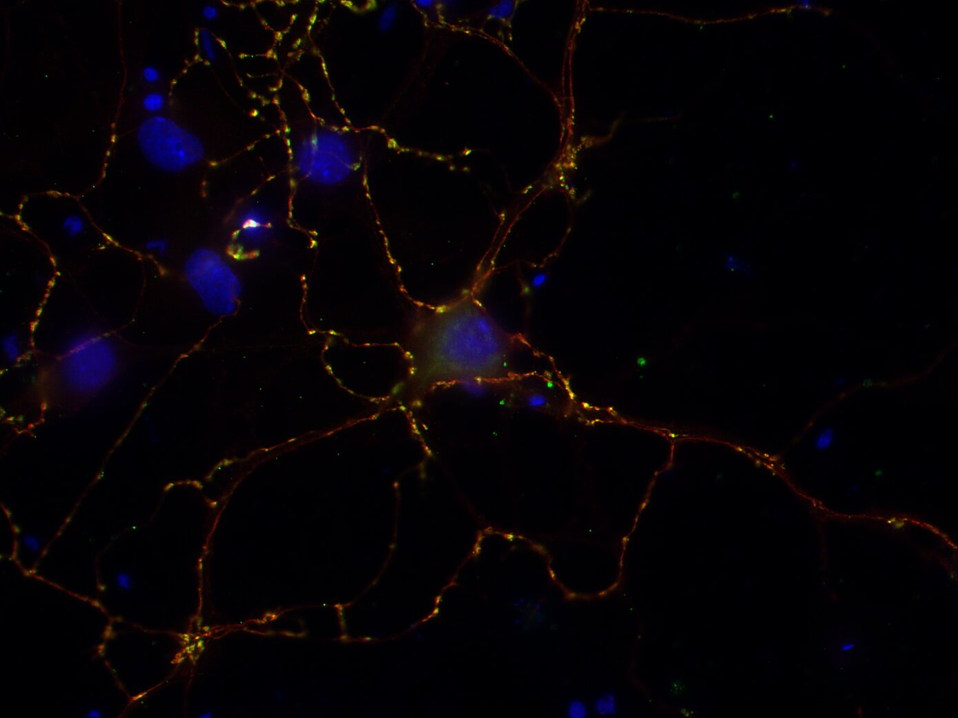 The glutamic acid decarboxylases GAD1 and GAD2, also referred to as GAD67 and GAD65 respectively, synthesize γ-aminobutyric acid (GABA), the major inhibitory neurotransmitter in the central nervous system. Therefore, GADs are widely used markers for the GABAergic system (1). The hydrophilic GAD1 can heterodimerize with the membrane achored GAD2 and a part of GAD1 is targeted to inhibitory nerve terminals by this mechanism (2). Although both proteins exhibit significant differences in their N-terminus they share high homology in the rest of the molecule (3).