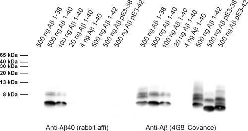 | Specificity | Specific for Abeta 40, no cross reactivity to Abeta 38 and 42. |