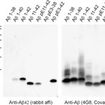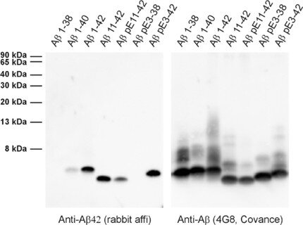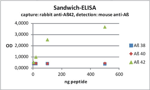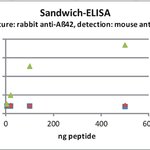 | Specificity | Specific for Abeta 42 with weak cross-reactivity to Abeta 40 in westernblots that is not apparent in ELISA tests. |