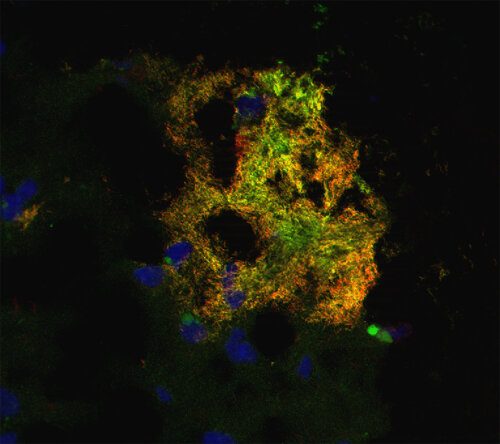 An additional Abeta variant, Abeta38, is more soluble compared to other Abeta species and is not found in plaques of sporadic Alzheimer´s cases. However, it is detected in the blood-vessel walls of a subset of patients with severe cerebral amyloid angiopathy. It especially accumulates in brains of patients carrying mutations in the Abeta coding region.