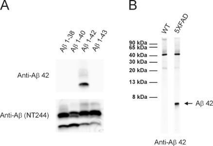 | Immunogen | Synthetic peptide corresponding to the carboxy terminal part of human Abeta42 (UniProt Id: P05067) |