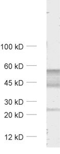 50 µg specific antibody, lyophilized. Affinity purified with the immunogen. Albumin and azide were added for stabilization. For reconstitution add 50 µl H2O to get a 1mg/ml solution in PBS. Then aliquot and store at -20°C to -80°C until use. Antibodies should be stored at +4°C when still lyophilized. Do not freeze! |
