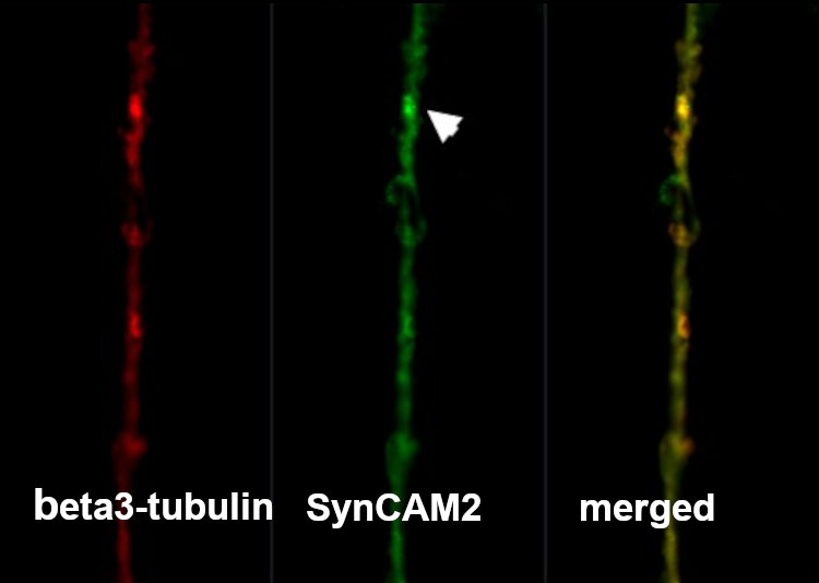 Development of synapses involves transsynaptic interactions of dedicated synaptic adhesion molecules like neuroligins, neurexins and synCAMs (Synaptic cell adhesion molecules). Four SynCAM isoforms have been described so far. All share a common domain structure and contain three extracellular Ig domains, a single transmembrane region, and a short COOH-terminal cytoplasmic tail.