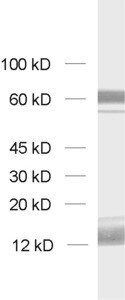 50 µg specific antibody, lyophilized. Affinity purified with the immunogen. Albumin was added for stabilization. For reconstitution add 50 µl H2O to get a 1mg/ml solution in PBS. Then aliquot and store at -20°C to -80°C until use. Antibodies should be stored at +4°C when still lyophilized. Do not freeze! |