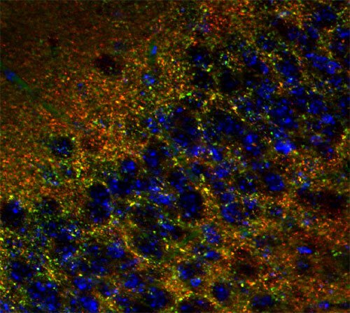 Depending on the brain region examined mover differentially localizes to inhibitory or exitatory subsets of synapses.