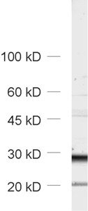 50 µg specific antibody, lyophilized. Affinity purified with the immunogen. Albumin and azide were added for stabilization. For reconstitution add 50 µl H2O to get a 1mg/ml solution in PBS. Then aliquot and store at -20°C to -80°C until use. Antibodies should be stored at +4°C when still lyophilized. Do not freeze! |