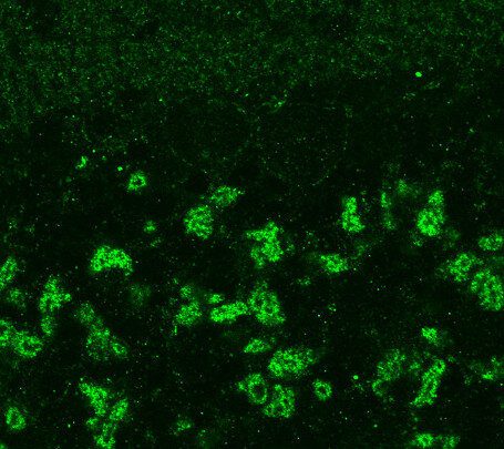 Immunohistochemistry (IHC) on 4% PFA perfusion fixed tissue with 24h PFA post fixation. Immunoreactivity is usually revealed by fluorescence or a chromogenic substrate. Some antibodies require special fixation methods or antigen retrieval steps. For details, please refer to the ”Remarks” section.