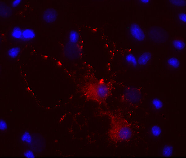 50 µg specific antibody, lyophilized. Affinity purified with the immunogen. Albumin was added for stabilization. For reconstitution add 50 µl H2O to get a 1mg/ml solution in PBS. Then aliquot and store at -20°C to -80°C until use. Antibodies should be stored at +4°C when still lyophilized. Do not freeze! |