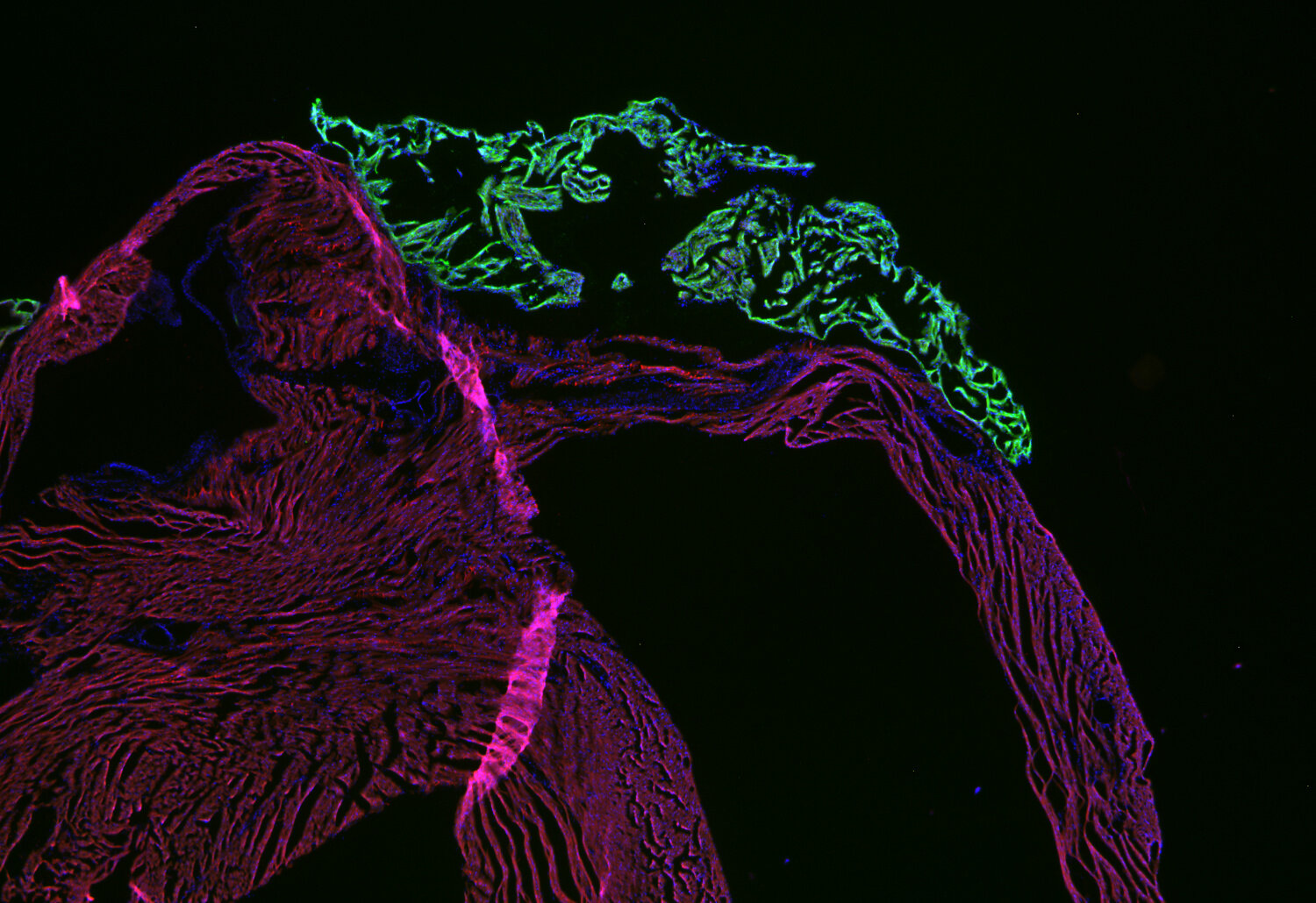 During cardiogenesis two major isoforms of myosin light chain 2 are co-expressed in a tightly regulated manner. MLC-2V is only present in the ventricle while MLC-2A is exclusively expressed in the atrium. Knock out studies revealed that the 2A isoform cannot substitute for the 2V variant in the ventricular chamber.