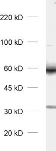 50 µg specific antibody, lyophilized. Affinity purified with the immunogen. Albumin was added for stabilization. For reconstitution add 50 µl H2O to get a 1mg/ml solution in PBS. Then aliquot and store at -20°C to -80°C until use. Antibodies should be stored at +4°C when still lyophilized. Do not freeze! |
